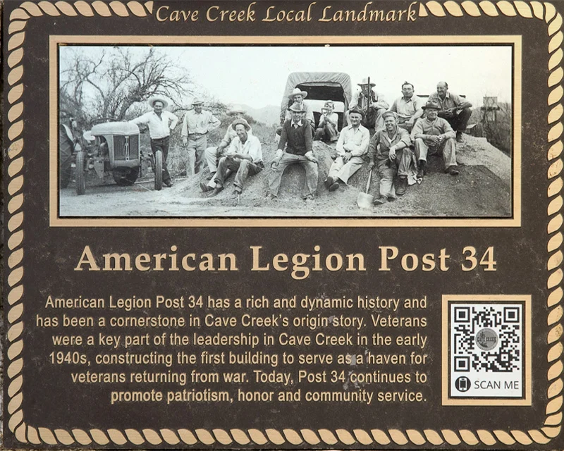 American Legion Post 34 has a rich and dynamic history and has been a cornerstone in Cave Creek’s origin story. Veterans were a key part of the leadership in Cave Creek in the early 1940s, constructing the first building to serve as a haven for veterans returning from war. Today, Post 34 continues to promote patriotism, honor and community service.